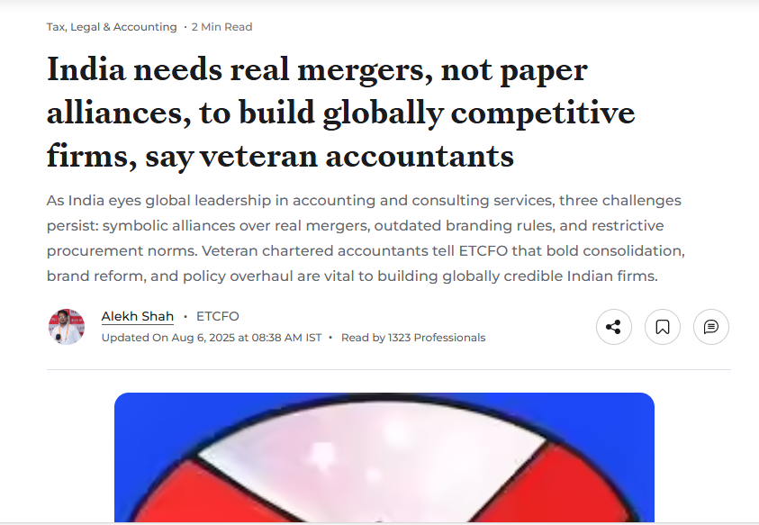 Ajay Sethi, Baker Tilly ASA India, emphasized that genuine mergers, not just branding alliances are the key to scale, credibility, and global competitiveness for Indian CA firms. His perspective underlines the need for structural change to strengthen India’s professional services ecosystem.